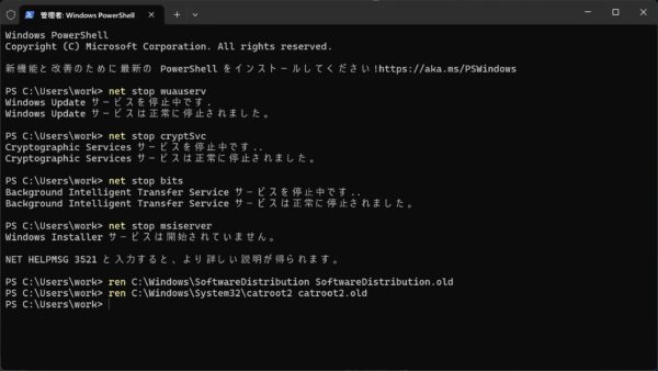 ren C:\Windows\SoftwareDistribution SoftwareDistribution.old ren C:\Windows\System32\catroot2 catroot2.old