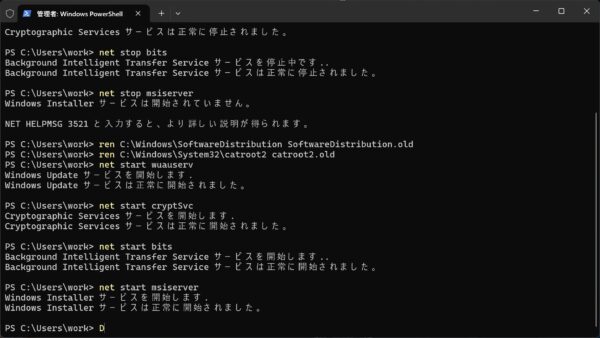 解決方法③ Windows Updateのキャッシュ(一時データ)を削除する